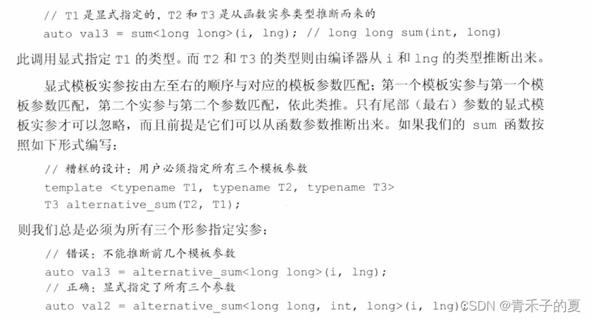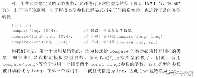 其他类型转换,如算术转换、派生类向基类的转换以及用户定义的转换,都不能应用于函数模板。