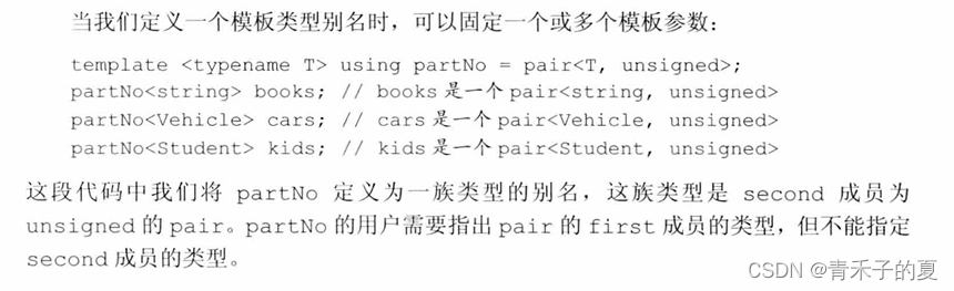与函数模板不同,类模板的特例化不必为所有模板参数提供实参,我们可以只指定一部分而非所有模板参数,或是参数的一部分而非全部特性。一个类模板的部分特例化(partial specialization)本身是一个模板,使用它时用户还必须为那些在特例化版本中为指定的模板参数提供实参。