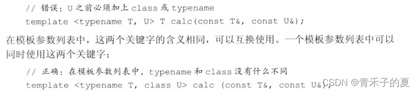 类型参数前必须使用关键字class或typename: