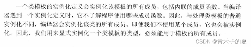 默认情况下,一个类模板的成员函数只有当程序用到它时才进行实例化。