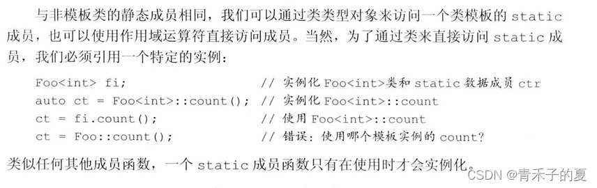 与任何其他static数据成员相同,模板类的每个static数据成员必须有且仅有一个定义。但是,类模板的每个实例都有一个独有的static对象。
