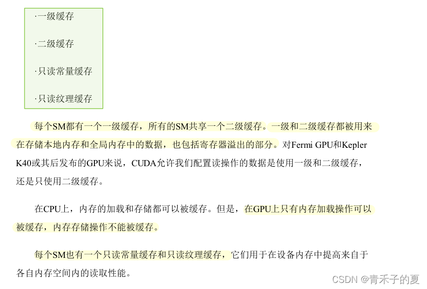 GPU缓存是不可编程的内存。在GPU上有4种缓存: