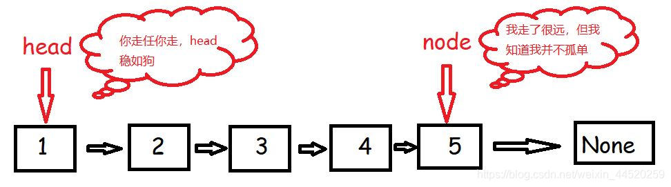 上面的过程是不是似曾相识?就是我们在“一个一个地添加节点”中的linked.next = ListNode(2),linked.next.next=ListNode(3),linked.next.next.next=ListNode(4)……