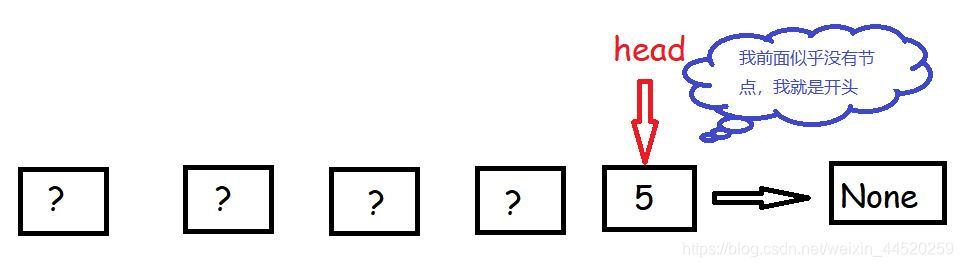 如果现在我想创建一个这样的链表:1->2->3->4->5->None,那么我可以用最简单的办法,一个节点一个节点地手动添加