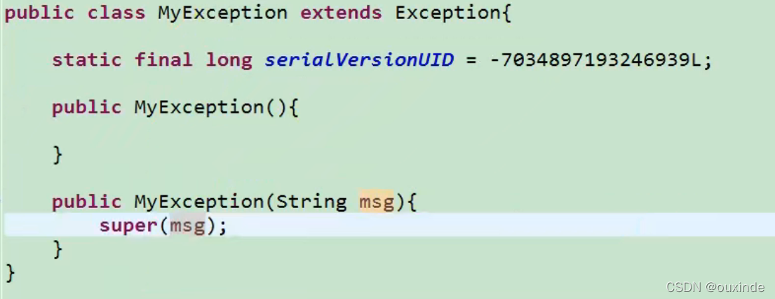 1.继承于现有的异常结构:RuntimeException 、Exception