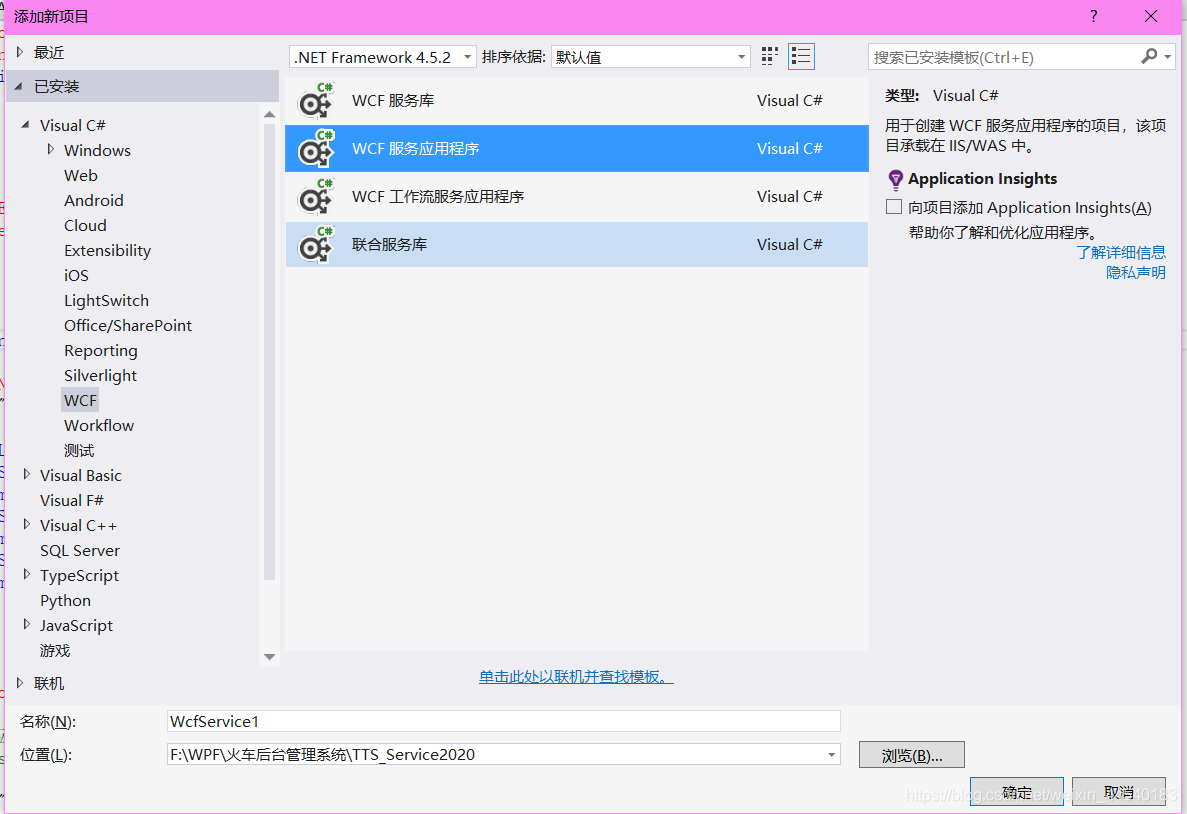 第一步就是要在新建项目里面新建一个WCF服务应用程序