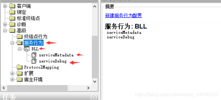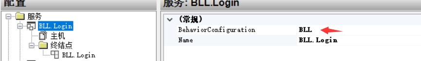 接着就要去高级的选择里,选择到服务行为,给它BLL层的名称,再然后就是给它下面两个配置服务行为。(如下图:)