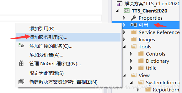 在客户端呢我们就要在项目的引用里添加新的服务引用把刚刚创建的服务引用进去就行了。