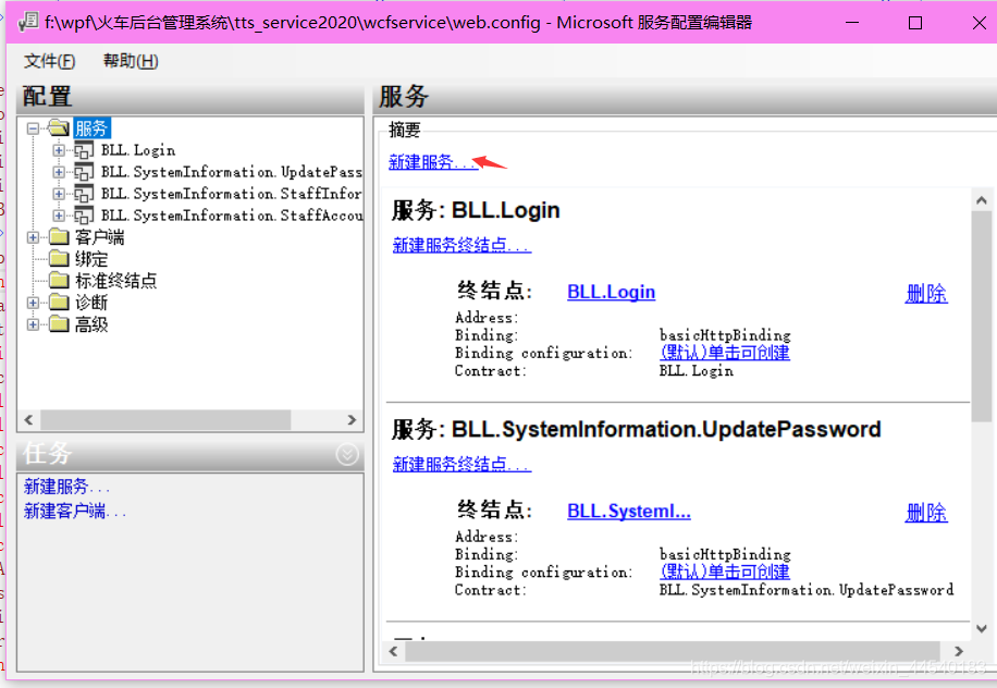 然后我们再去配置我们的服务,创建成功后才能在我们的客户端连接到我们新建的服务引用。