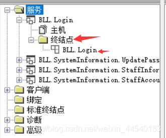 首先点开左边的服务,点击服务名称,然后给它选中BLL层,在接着给服务的终结点一个名称。(如下图:)