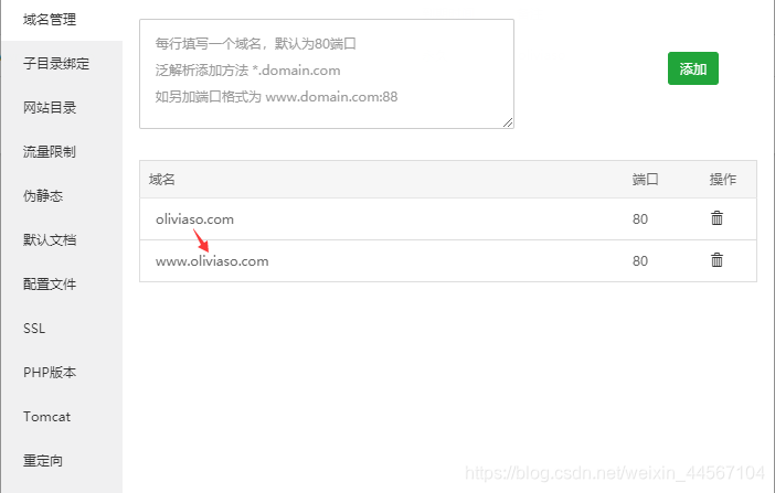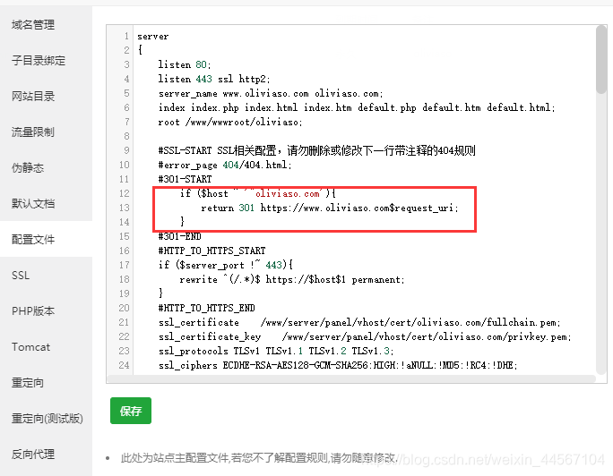 如果网站有多个域名只是在宝塔里面设置多域名绑定站点是不行的,需要额外配置重定向,例如需要把不带www的域名跳转到带www的域名下。