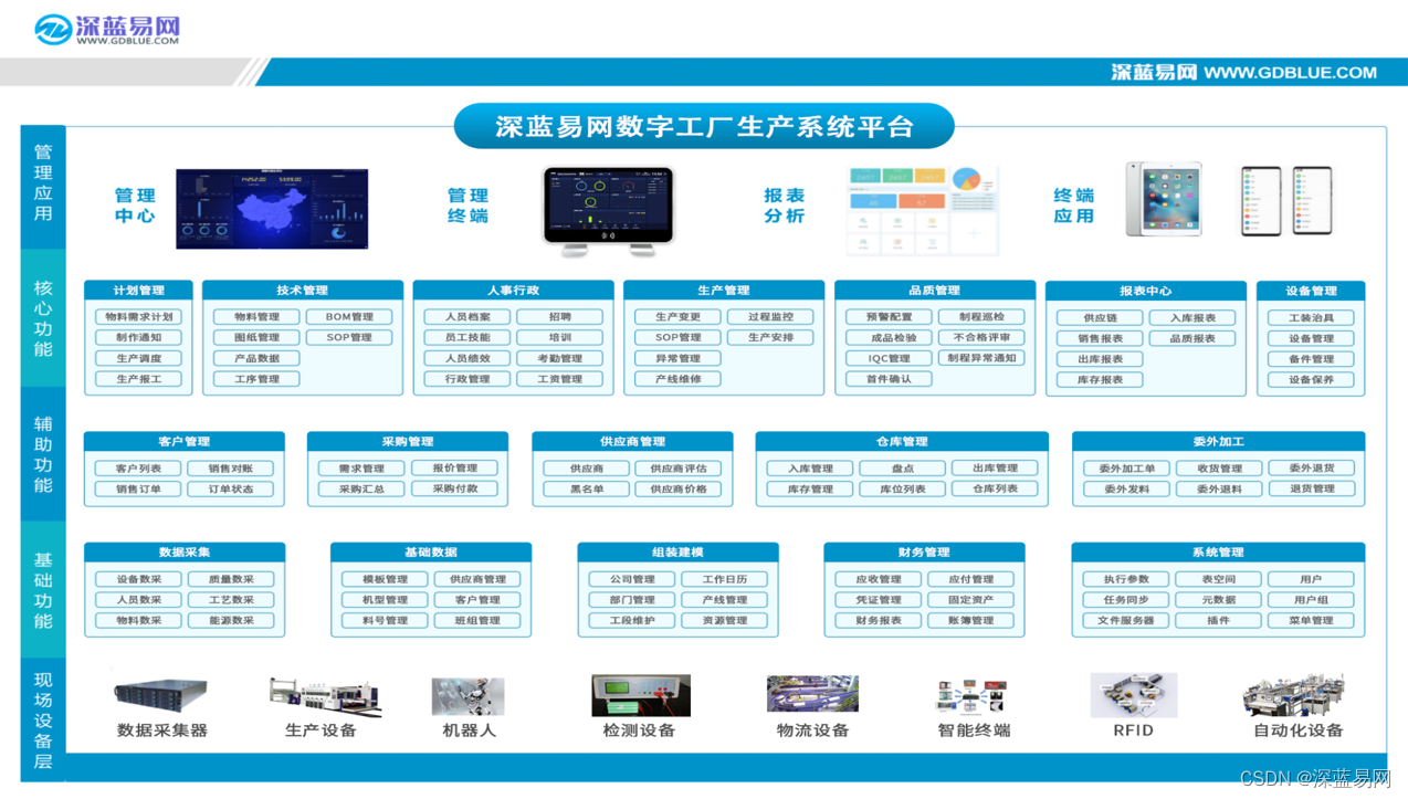 企业充分运用5G、物联网、NBIoT、云计算、边缘计算等数字技术,推动硬件设施的系统、接口、网络连接协议等向标准化升级,促使设施具备互联互通和安全防护能力,形成支撑数字化转型的基础底座。主要包括: