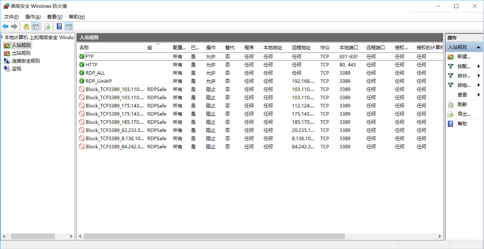 程序运行后添加的防火墙规则(红色阻止图标规则)