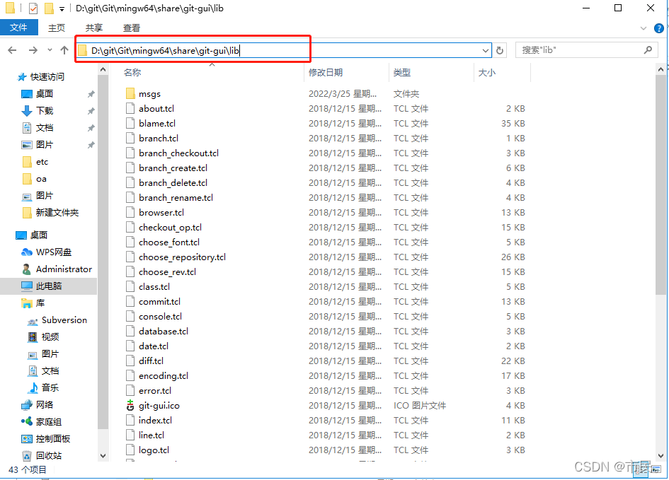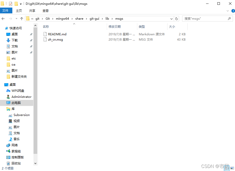 找到你的git 安装目录下 D:\git\Git\mingw64\share\git-gui\lib 我的lib下没有msgs 所以我新建了个文件夹