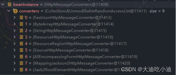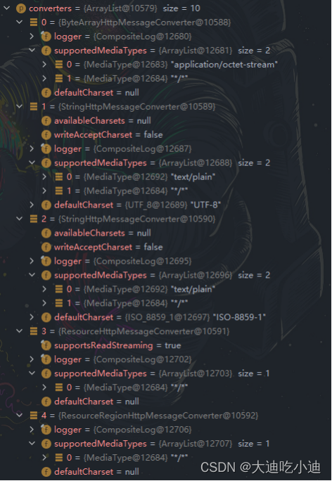 消息转换器列表早在配置请求适配器之前已经实例化完成并存储在这里:
