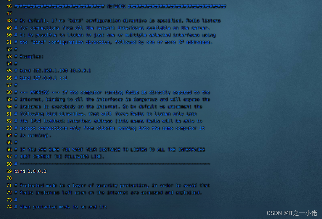 绑定ip:如果需要远程访问,可将此⾏注释,或绑定⼀个真实ip