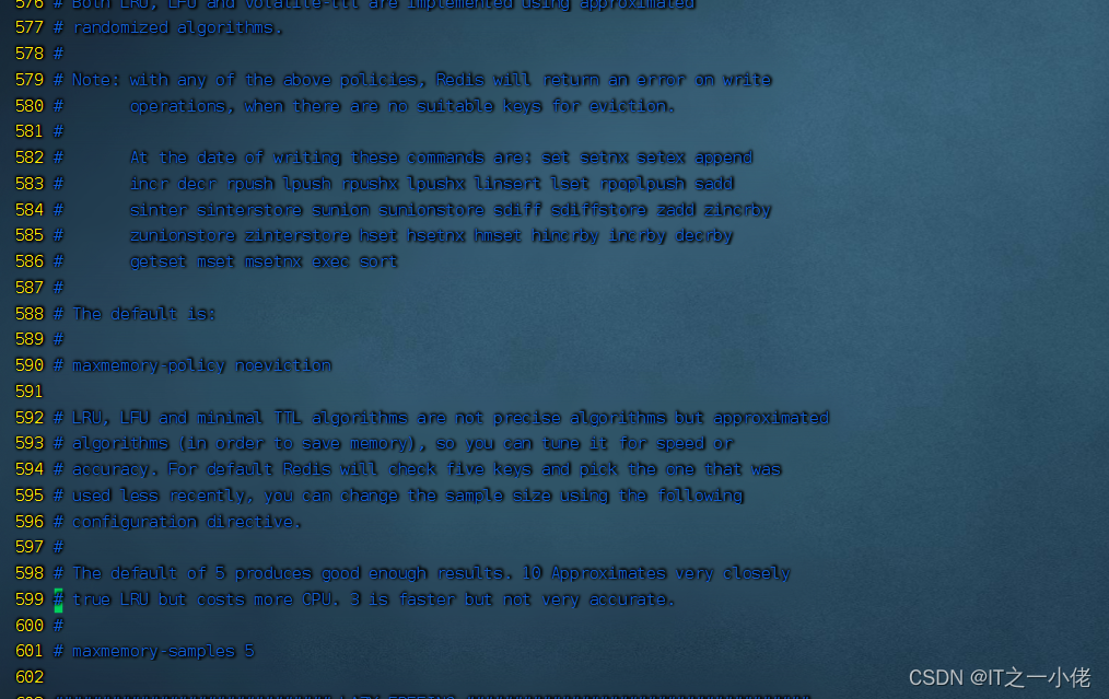 6)noeviction noeviction 不移除任何key,只是返回一个写错误 ,默认选项maxmemory-samples :LRU 和 minimal TTL 算法都不是精准的算法,但是相对精确的算法(为了节省内存)。随意你可以选择样本大小进行检,redis默认选择3个样本进行检测,你可以通过maxmemory-samples进行设置样本数。