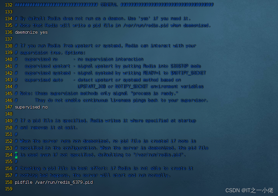 daemonize:设置为yes表示指定Redis以守护进程的方式启动(后台启动)。默认值为 no
