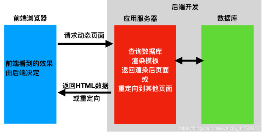 在前后端不分离的应用模式中,前端页面看到的效果都是由后端控制,由后端渲染页面或重定向,也就是后端需要控制前端的展示,前端与后端的耦合度很高。