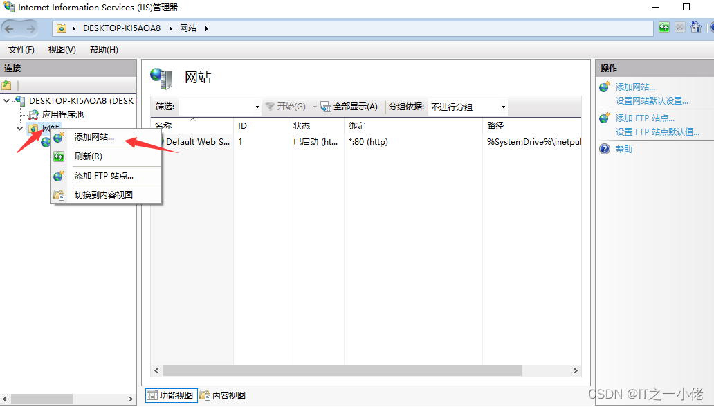 注意:一个服务器发布网站时可以同一个端口号不同的IP地址,也可以同一个IP地址不同的端口号,一般选择后者。