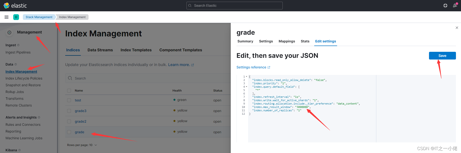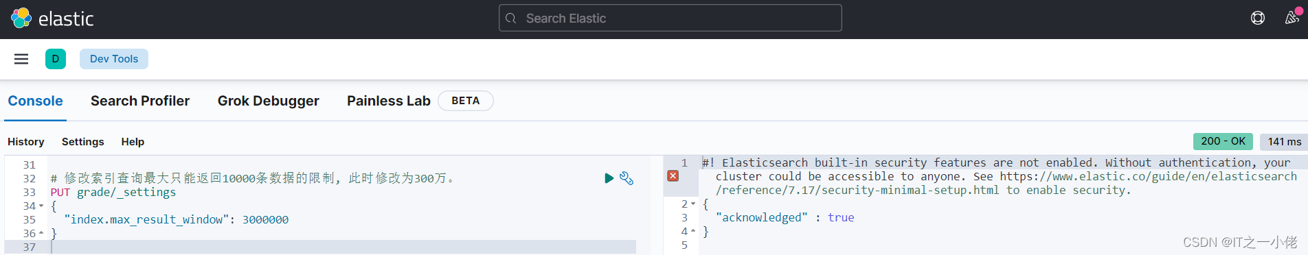 # 修改索引查询最大只能返回10000条数据的限制, 此时修改为300万。