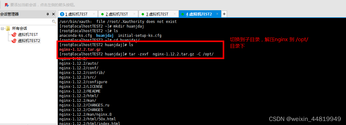 [root@localhostTEST2 huanjdaj]# tar -zxvf nginx-1.12.2.tar.gz -C /opt/