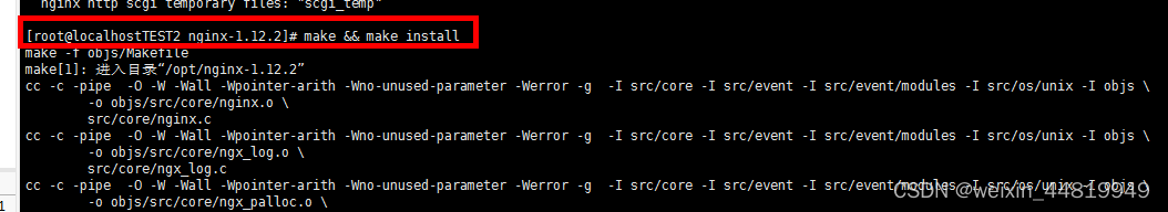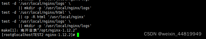 [root@localhostTEST2 nginx-1.12.2]# make && make install