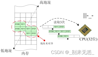 如果存取的数据刚好落在所需单元数之内,那么我们就说这个数据的地址是对齐的,如果存取的数据跨越了边界,使用了超过所需单元的字节,那么我们就说这个数据的地址是未对齐的。