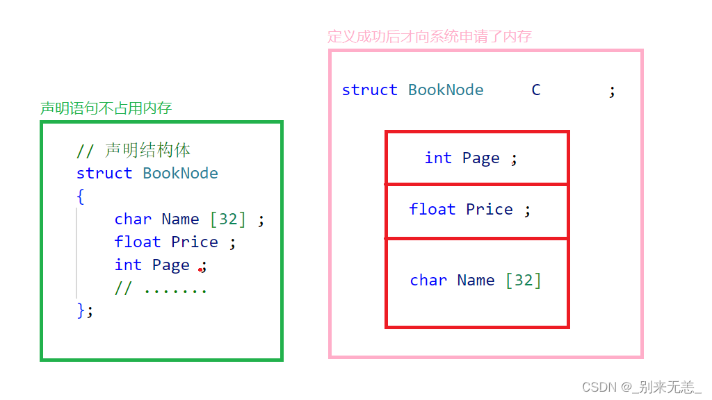 struct BookNode C ; // 定义语句 才向系统申请内存空间
