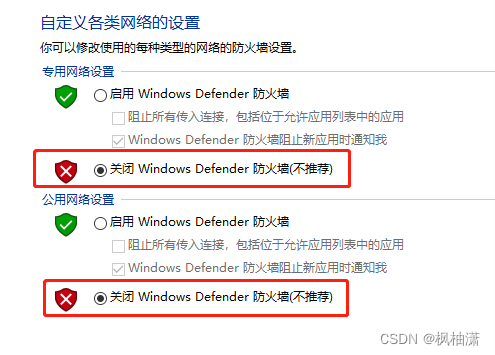 第二步:关闭防火墙设置