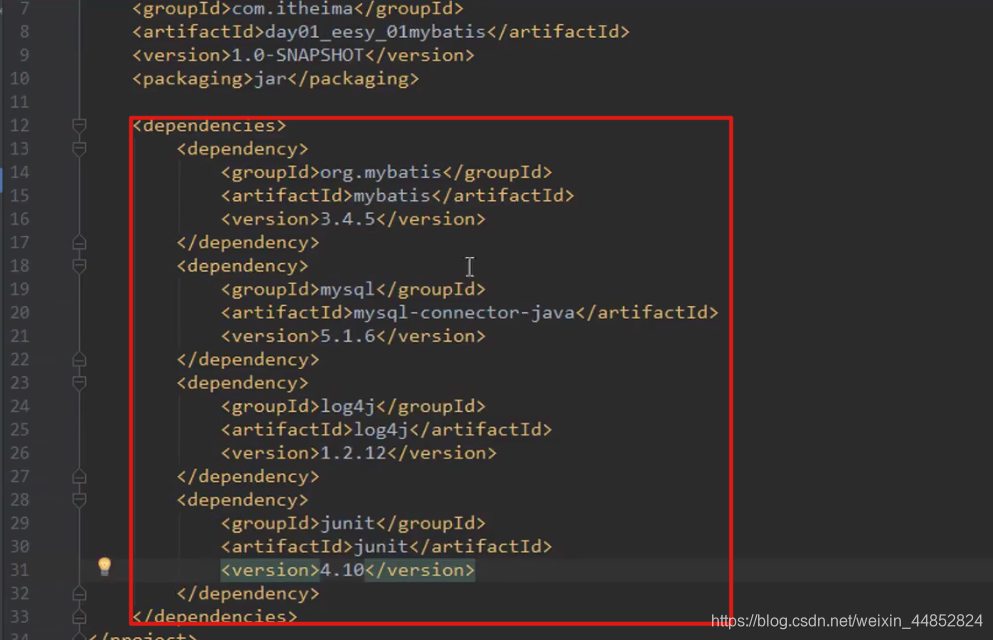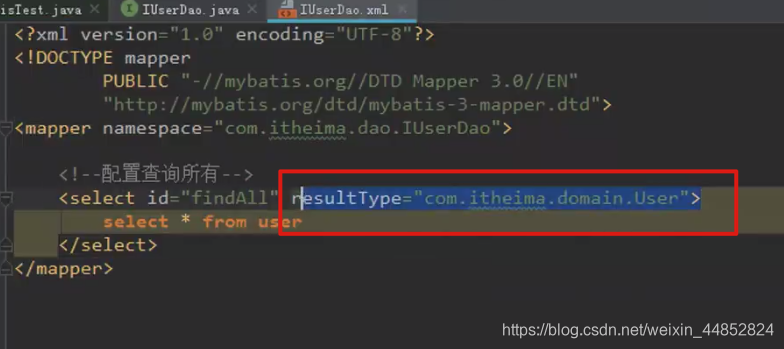 14.可以运行了,如果报错,加上下面的内容,resultType是指定查询的结果封装到的地方。