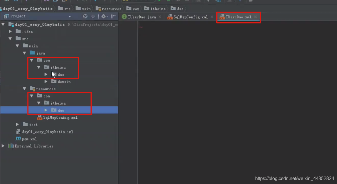 8.创建包结构,在resource目录下,注意与上面的文件夹对应,这个很重要,在里面创建配置对应的配置文件。