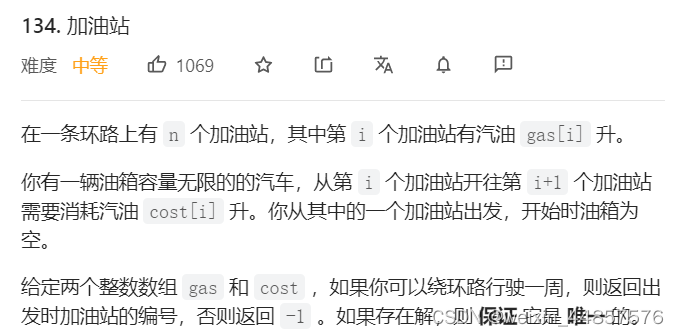 博客围绕LeetCode算法题展开,介绍两种C++解法。一是遍历结点个数确定,判断当前结点能到达的最远值,若经过结点数等于n则可遍历一周;二是根据剩余油量判断,若总油量大于等于总耗油量,即油剩余量大于等于0就能跑完一圈,总耗油量小于0则返回 -1。
