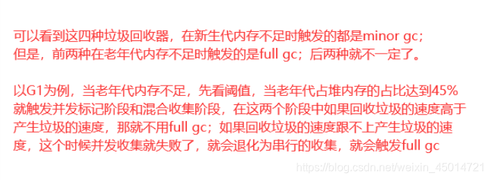 - 老年代内存不足发生的垃圾收集,需要分2种情况,看红体字