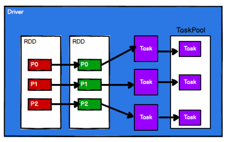 从以上流程可以看出 RDD 在整个流程中主要用于将逻辑进行封装,并生成 Task 发送给Executor 节点执行计算,接下来我们就一起看看 Spark 框架中 RDD 是具体是如何进行数据处理的。