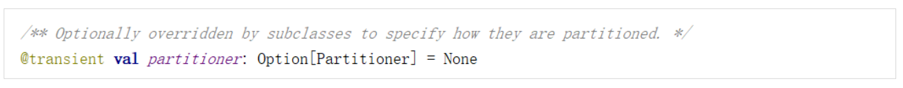 Optionally, a Partitioner for key-value RDDs (e.g. to say that the RDD is hash-partitioned)