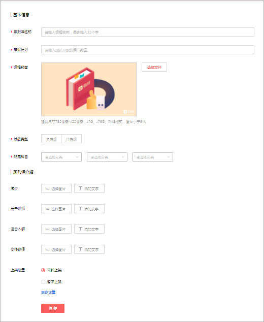 7、出现“新建系列课”页面,填入各项信息(带*号的为必填,不带的可以不填);