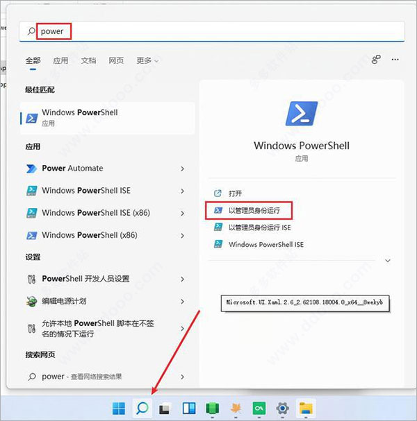 现在开始安装本体,先点击搜索,按照图中的示例,用管理员身份运行;