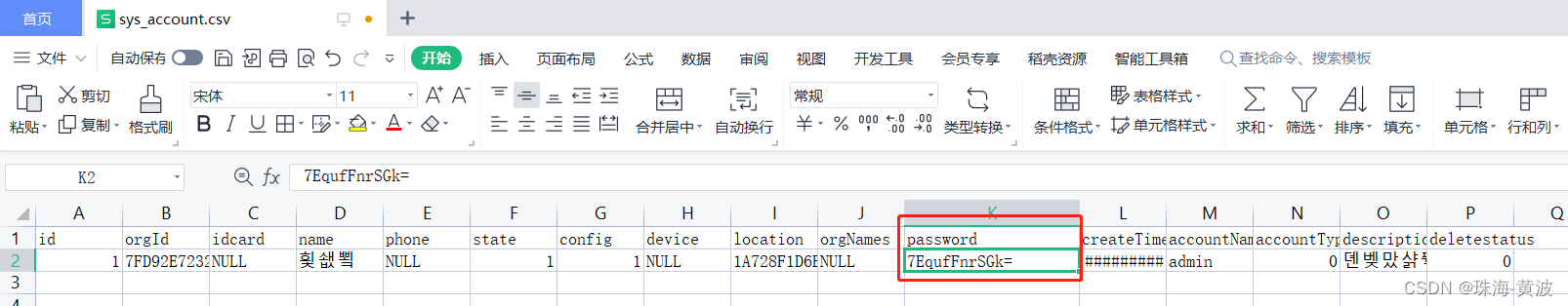 打开“sys_account.csv” 注意到 密码字段为 base64加密密码