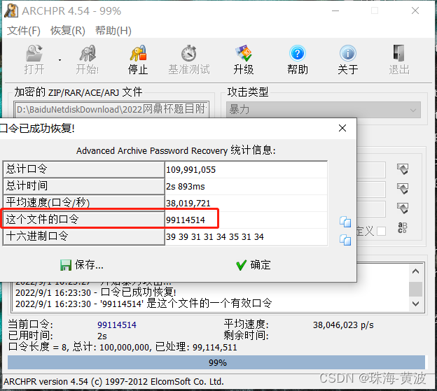 解压提示需要密码,使用爆破软件进行爆破