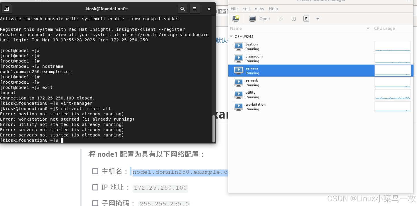 一直在备考RHCE的考试,结果一直没有时间坚持下来,总是学了忘,学了忘。现在把所有题目和学习及思考的过程每天进行一个记录,打卡监督自己进行考试。
