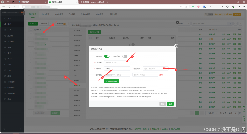 点开你刚建立的站点,点开反向代理,输入代理名称(随便就行)