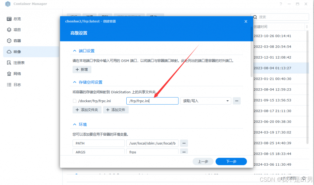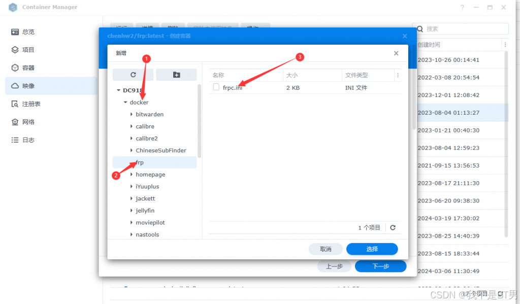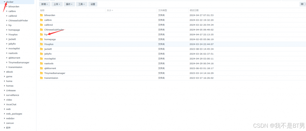 群晖docker文件夹内,新建frp文件夹,打开frp文件夹,