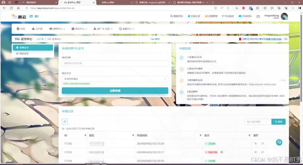 以雨云为例申请SSL,雨云1级账号可以创建五个免费证书