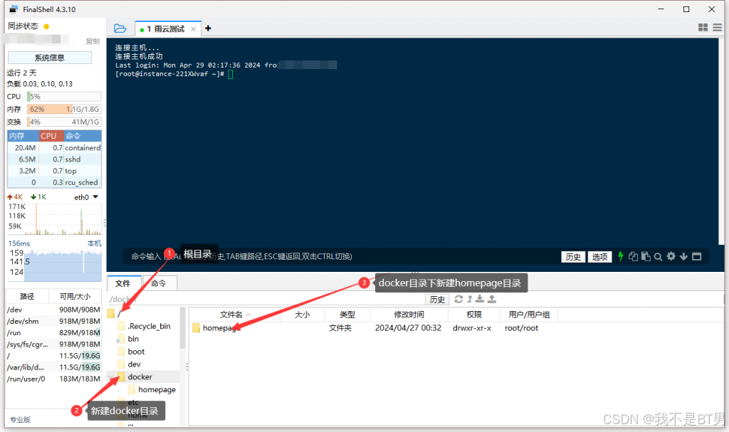 首先在服务器根目录下新建docker文件夹,docker文件夹下新建homepage文件夹