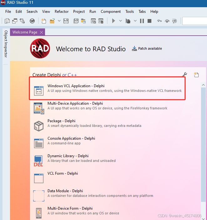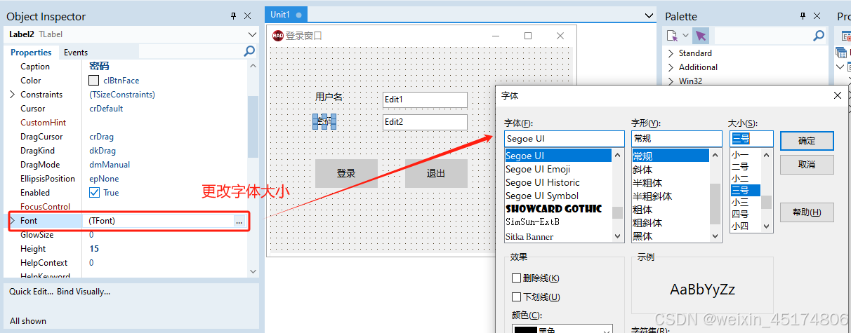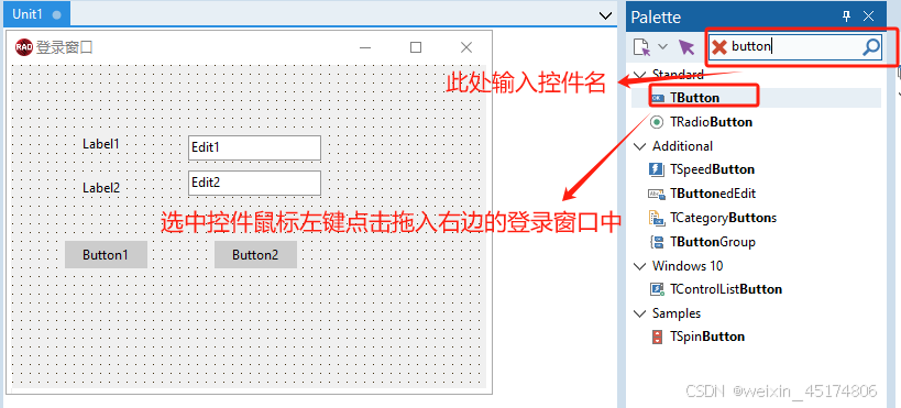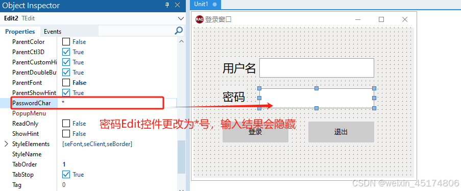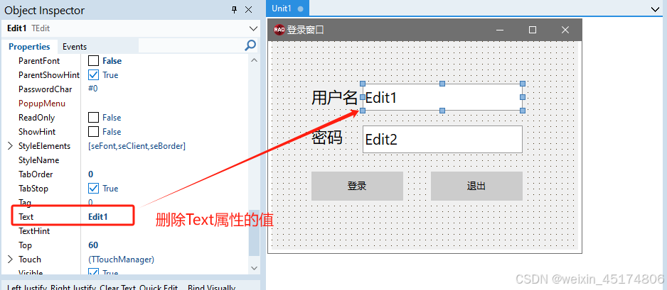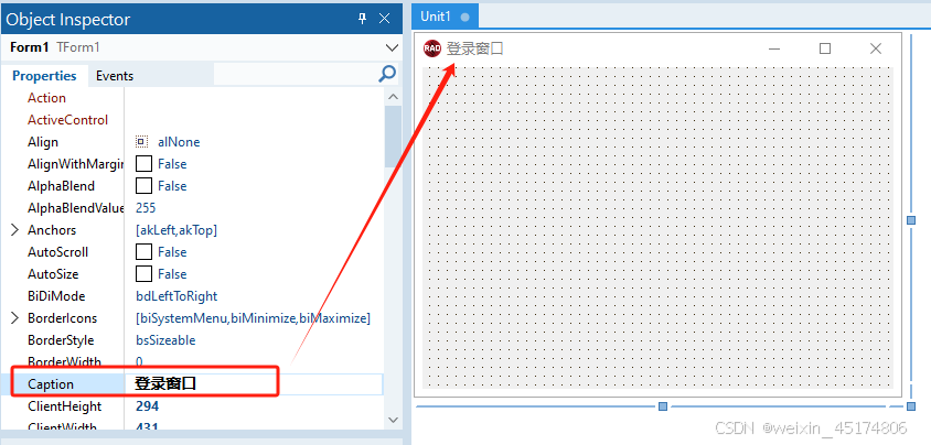 前言 使用软件工具:RAD Studio 11 写文章的目的:当作自己的学习笔记,方便以后巩固查看。 Form窗体的实现 1、新建一个VCL Application工程(新建一个Form) 2、更改Form标题Caption属性为登录窗口 3、添加控件Tlabel、TEdit、TButton 4、更改各个控件的属性、大小和位置 5、点击运行会得到以下结果
