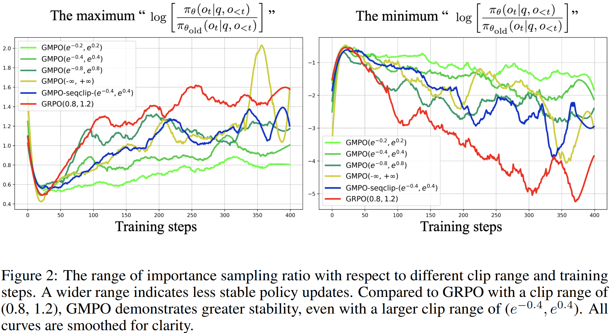 这张图表通过直观的方式证明了GMPO算法在训练稳定性方面的显著优势。几何平均的引入不仅是一个数学上的改进,更是解决了大语言模型强化学习训练中的根本性稳定性问题。通过控制重要性采样比率的波动范围,GMPO确保了训练过程的平稳进行,为开发更强大、更可靠的AI系统奠定了坚实基础。