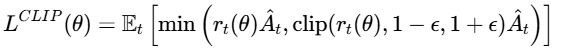 clip(rt(θ),1−ϵ,1+ϵ)将比率限制在 [1−ϵ,1+ϵ]范围内
