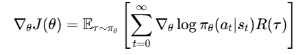 R(τ)是轨迹 τ的总累积奖励