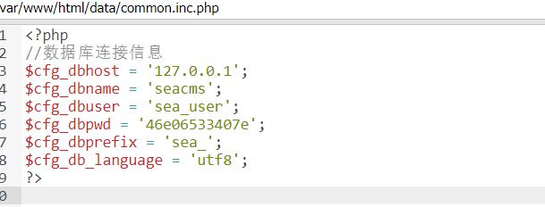 在这个目录里看一下数据库配置信息 /var/www/html/data/common.inc.php